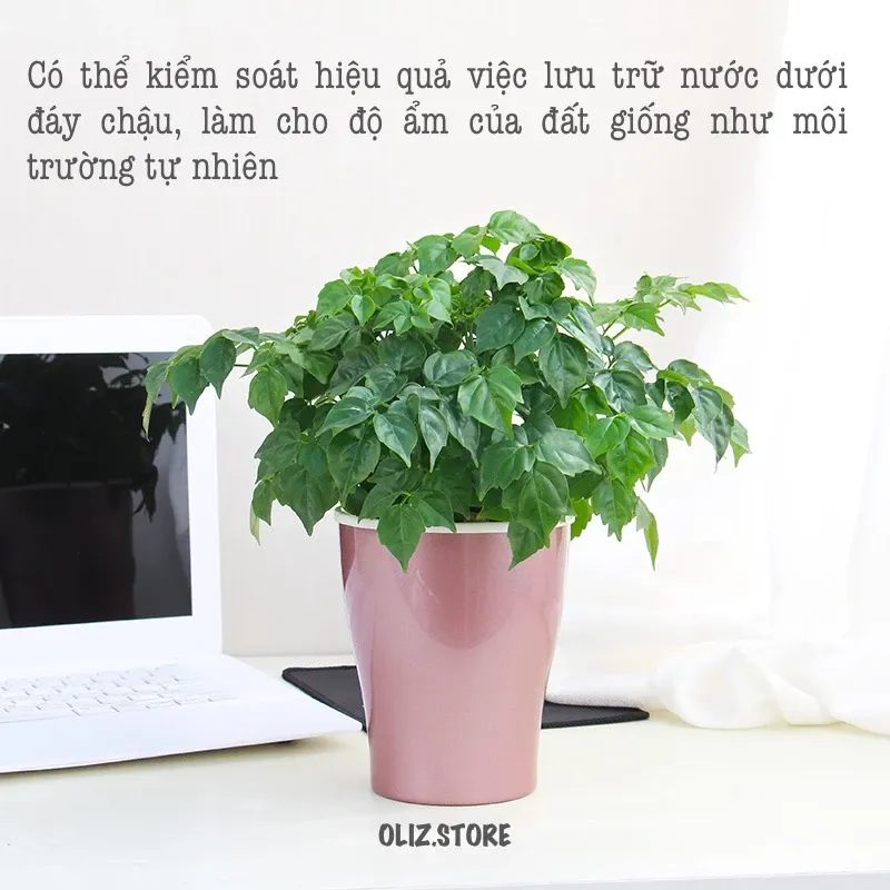 🌿 Tự tưới thông minh: Chậu hoa nhỏ để bàn được trang bị hệ thống tự tưới nước bằng dây cotton, giúp cây luôn đủ ẩm mà không cần tưới mỗi ngày. Bạn hoàn toàn yên tâm khi đi công tác, du lịch mà không lo cây bị khô héo.