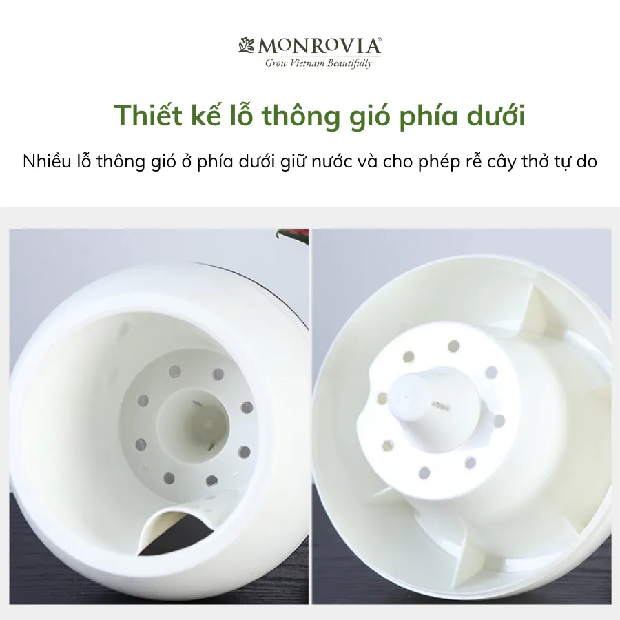 🌻 Thiết kế xinh xắn, hiện đại: Với màu trắng trang nhã, chậu nhựa trồng cây MONROVIA I0 mang đến vẻ đẹp tinh tế, phù hợp để trang trí bàn làm việc, ban công, hay bất kỳ góc nào trong ngôi nhà và văn phòng của bạn.