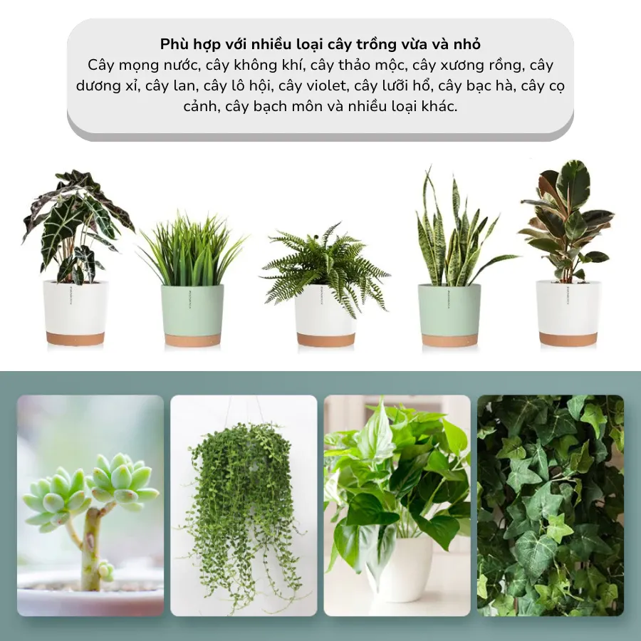 5. Đa Năng, Phù Hợp Mọi Không Gian: Chậu phù hợp với mọi loại cây, từ cây hoa, cây cảnh đến các loại cây mọng nước, có thể trồng trong nhà hay ngoài trời.