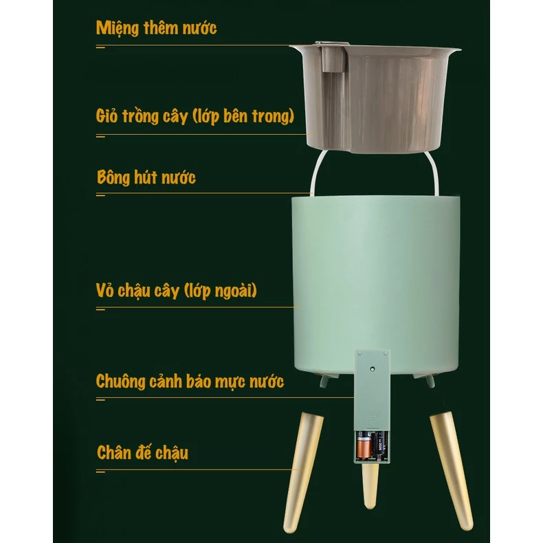 🌱 Tiết kiệm thời gian và công sức: Chậu tự tưới và có chuông báo khi cây thiếu nước giúp bạn dễ dàng chăm sóc cây mà không cần phải lo lắng về việc quên tưới cây mỗi ngày.