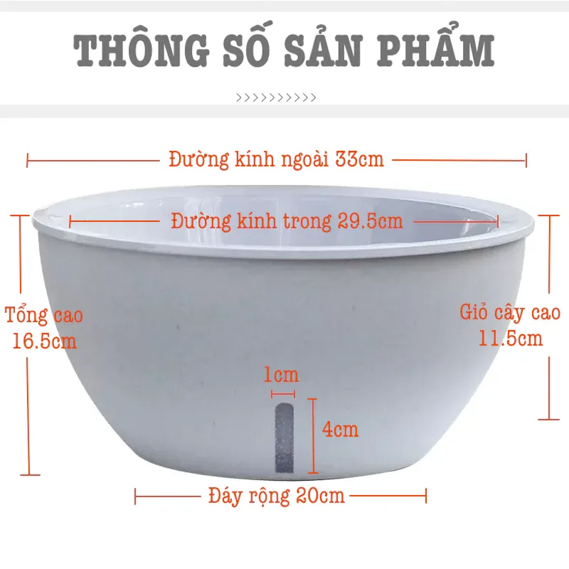 🌱 Lỗ thoát khí và thoát nước: Để đảm bảo cây có đủ không khí và thoát nước hiệu quả, chậu được thiết kế với lỗ thoát nước và thoát khí dưới đáy. Điều này giúp rễ cây có không gian để hô hấp và phát triển mạnh mẽ.