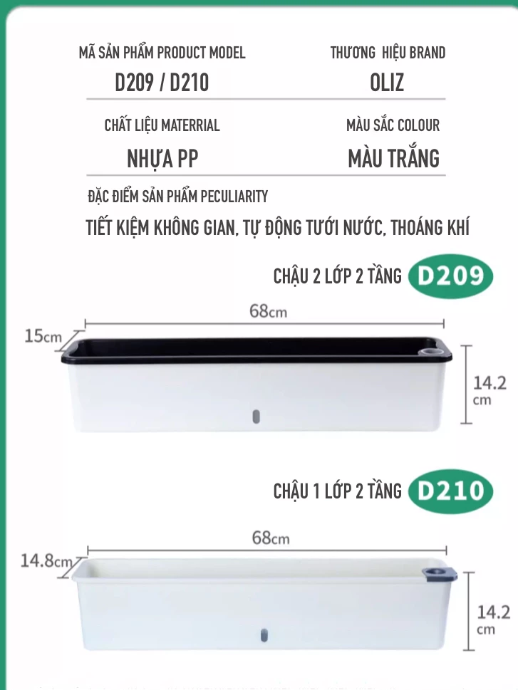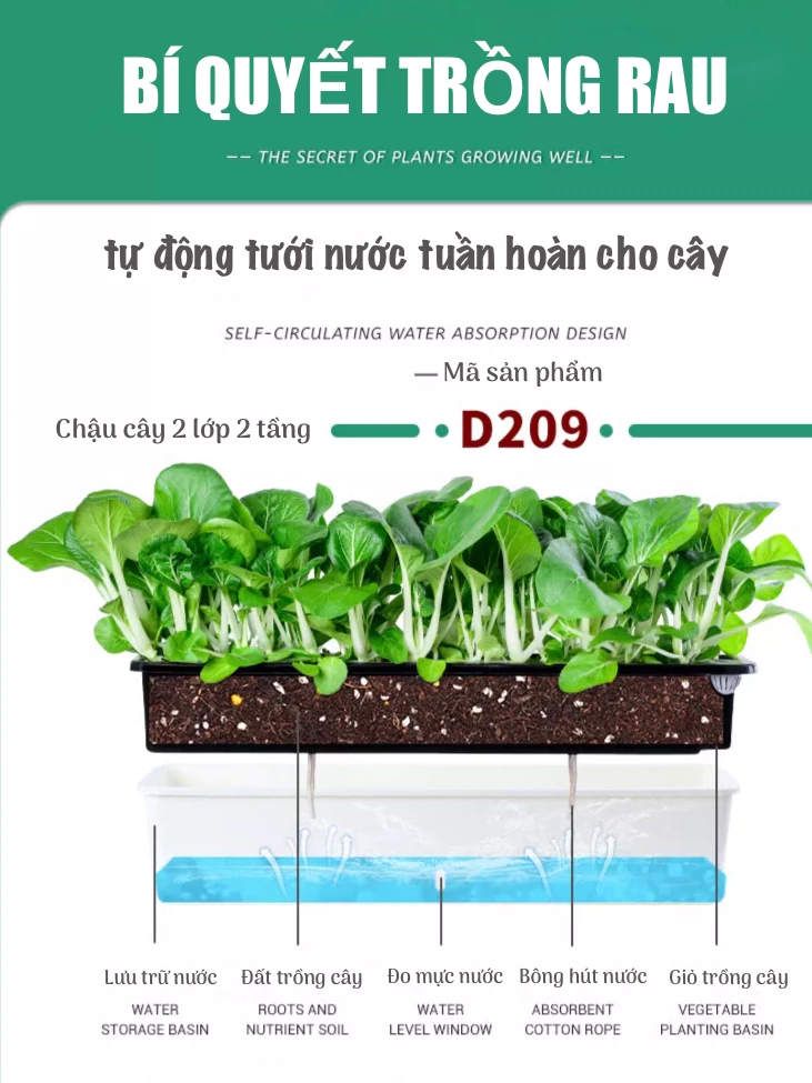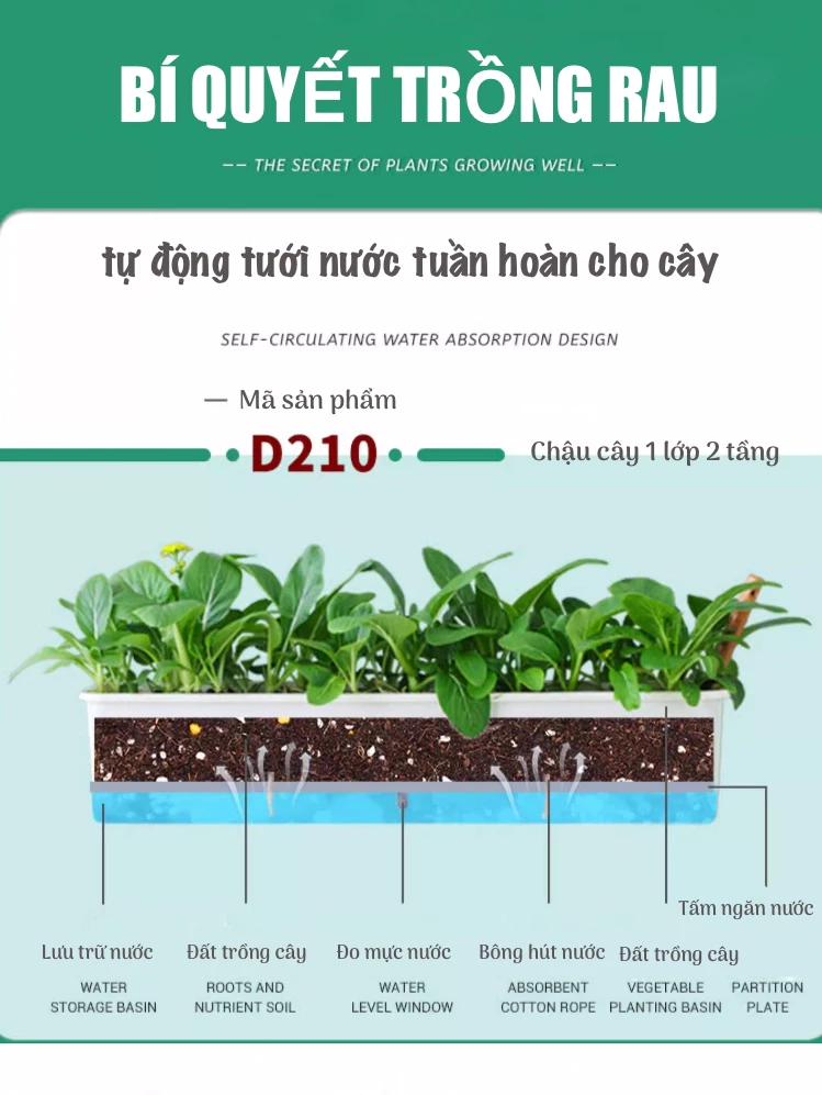 🌞 Thiết kế 2 lớp khoa học: Lớp trên để trồng cây, lớp dưới chứa nước dự trữ.