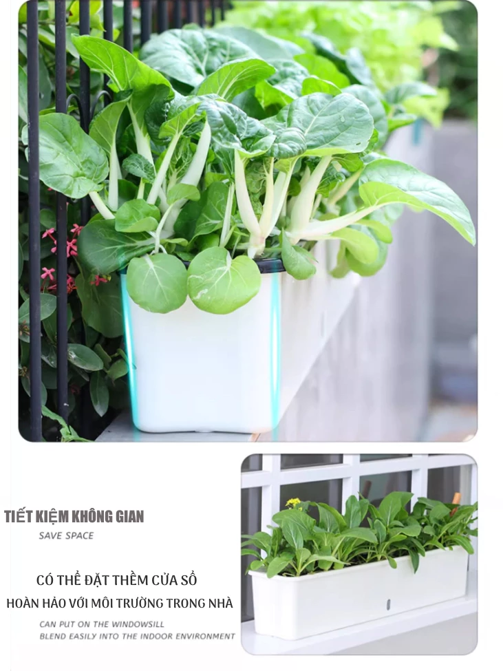 Với chậu trồng rau trên sân thượng tự tưới, bạn có thể dễ dàng trồng nhiều loại rau khác nhau, từ rau ăn lá hàng ngày đến các loại rau thơm. Sản phẩm phù hợp với mọi không gian sân thượng, giúp bạn tận dụng tối đa diện tích để tạo nên một khu vườn xanh mát và cung cấp nguồn thực phẩm sạch cho gia đình.