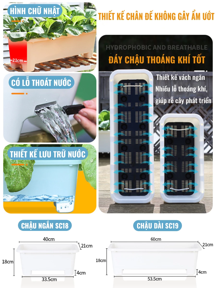 🌿 Hệ thống thoát nước hiệu quả: Đáy chậu có lỗ thoát nước thông minh, giúp cây phát triển bộ rễ khỏe mạnh và tránh tình trạng ngập úng. Chân đế của chậu tạo khoảng trống dưới đáy, giúp không gian dưới chậu luôn khô ráo, sạch sẽ.