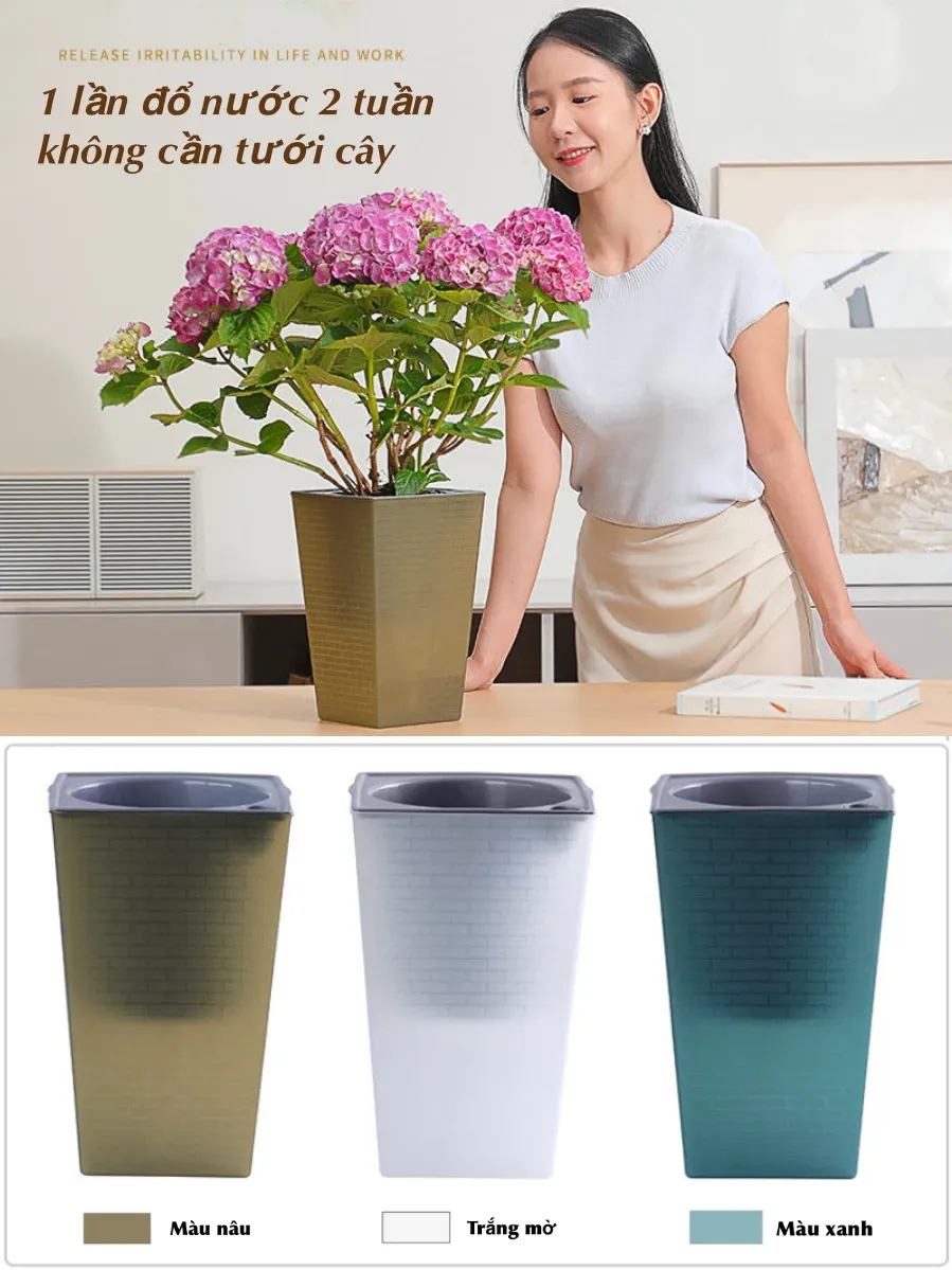 - Lưu ý: Chậu có thiết kế thông minh với khả năng tự tưới nước qua hệ thống sợi cotton, giúp duy trì độ ẩm lâu dài mà không cần phải tưới nước mỗi ngày.