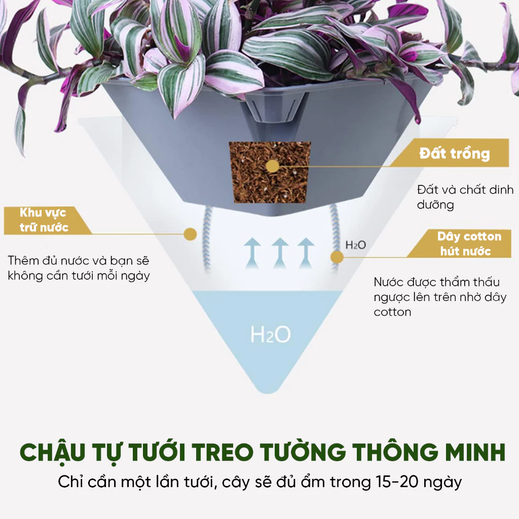 🌱Tên sản phẩm: Chậu tự tưới treo tường K104 MONROVIA
