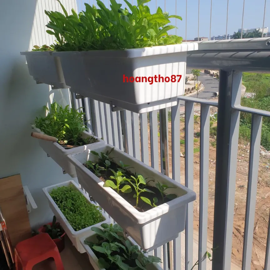 - Chiều rộng móc treo: 10 cm (phù hợp với hầu hết các loại lan can ban công).