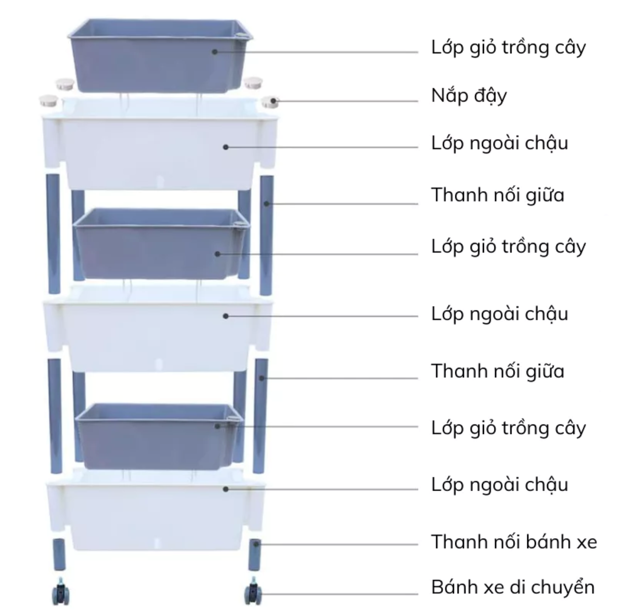 🌿 Được thiết kế với chiều cao hợp lý và 4 bánh xe xoay, bạn có thể dễ dàng di chuyển kệ trồng rau xung quanh, từ sân thượng đến ban công chung cư hay ngay trong nhà. Chức năng khóa vị trí giúp giữ kệ trồng rau vững vàng, tránh các chuyển động không chủ ý, mang lại sự an toàn và ổn định tuyệt đối.